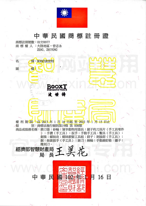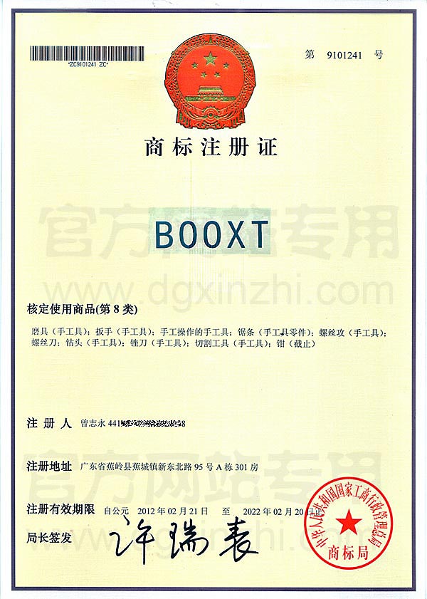 • BOOXT第8類商標注冊證