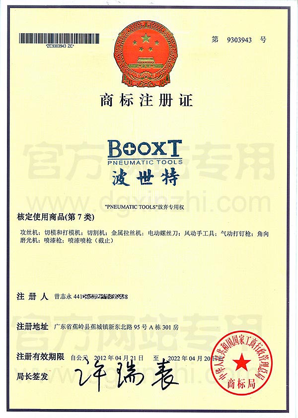• BOOXT波世特商標注冊證